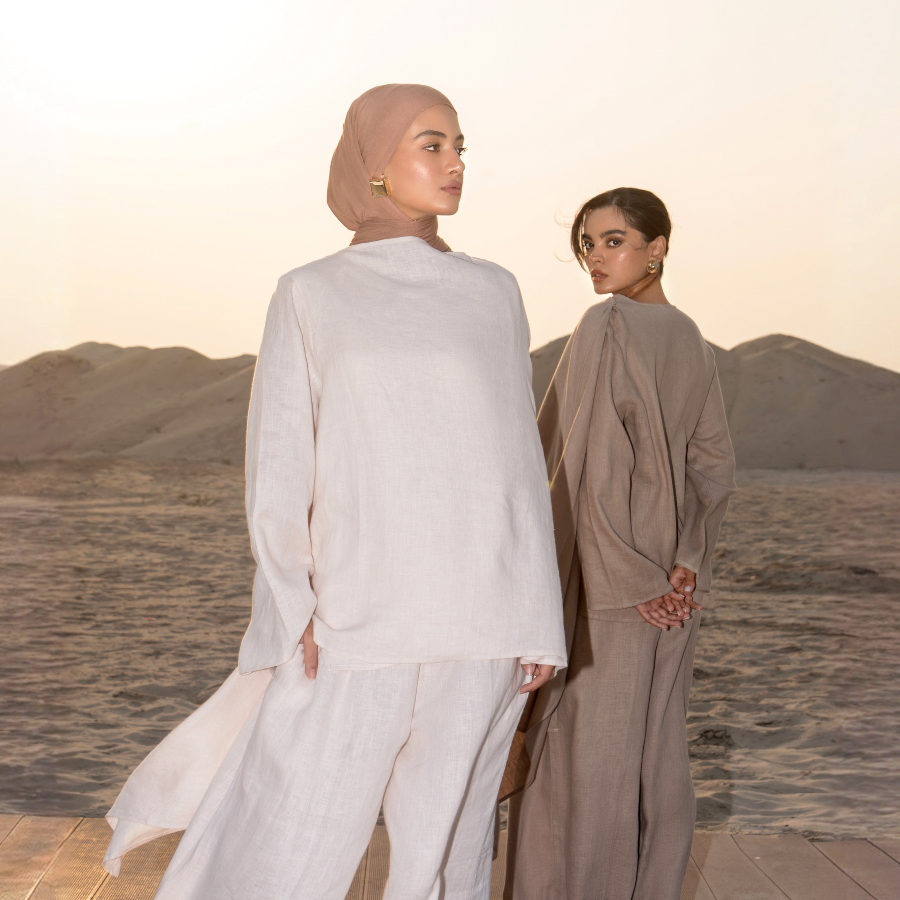 Every piece is crafted from breathable, natural fabrics carefully selected to suit the warm Gulf climate while feeling beautiful anywhere in the world. We use premium materials and meticulous stitching to ensure durability and a luxurious feel, so you can enjoy both comfort and quality in every garment.