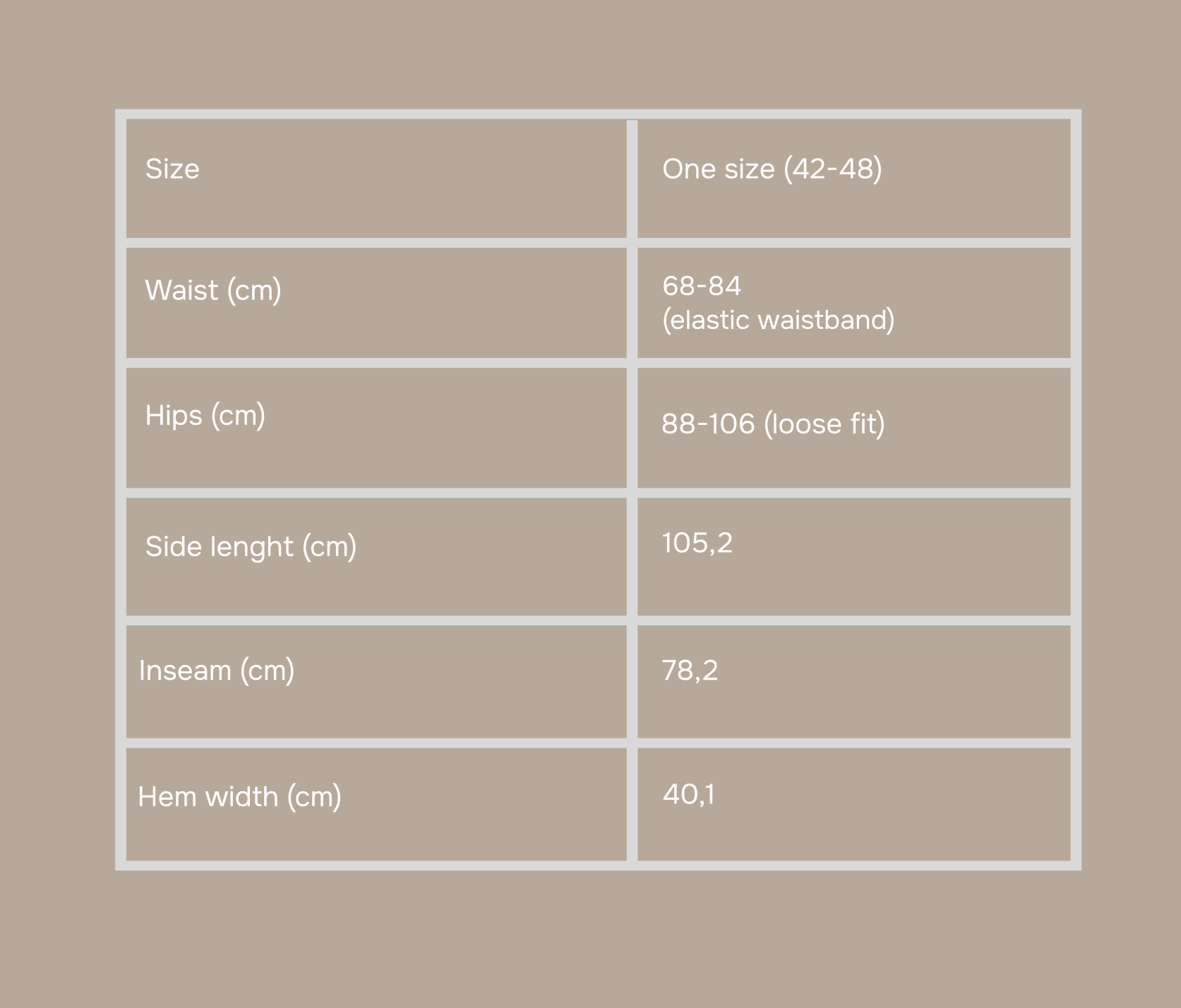 • Our model Mahdokht is 170 cm (87-60-90 cm) wearing the Linen Culottes in Sand Brown, One size.